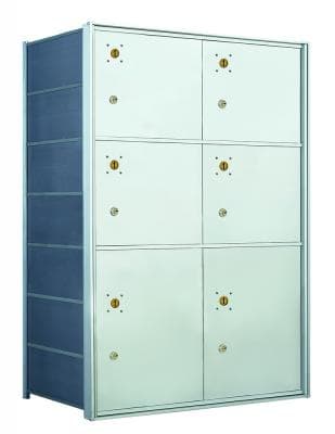 Includes Parcel locker door - a means of USPS package delivery. Dual, captive locking system allows USPS to deliver a package to the locker leaving the key in the tenant's mailbox. Package is retrieved by the tenant and key is retained securely in the lock for the Postal Service to retrieve and reuse for the next package delivery.
