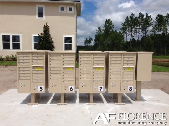(OnSight, Inc. - Jacksonville, FL)Various CBU installations in Dark Bronze and Sandstone. Some CBUs are fitted with vogue cap and pedestal accessories.